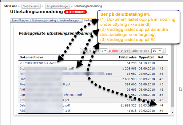 Ved utfylling av anmodning blir vedlegg knyttet til løpenummer