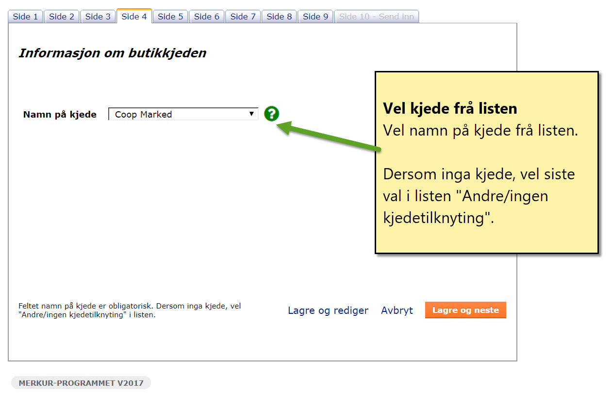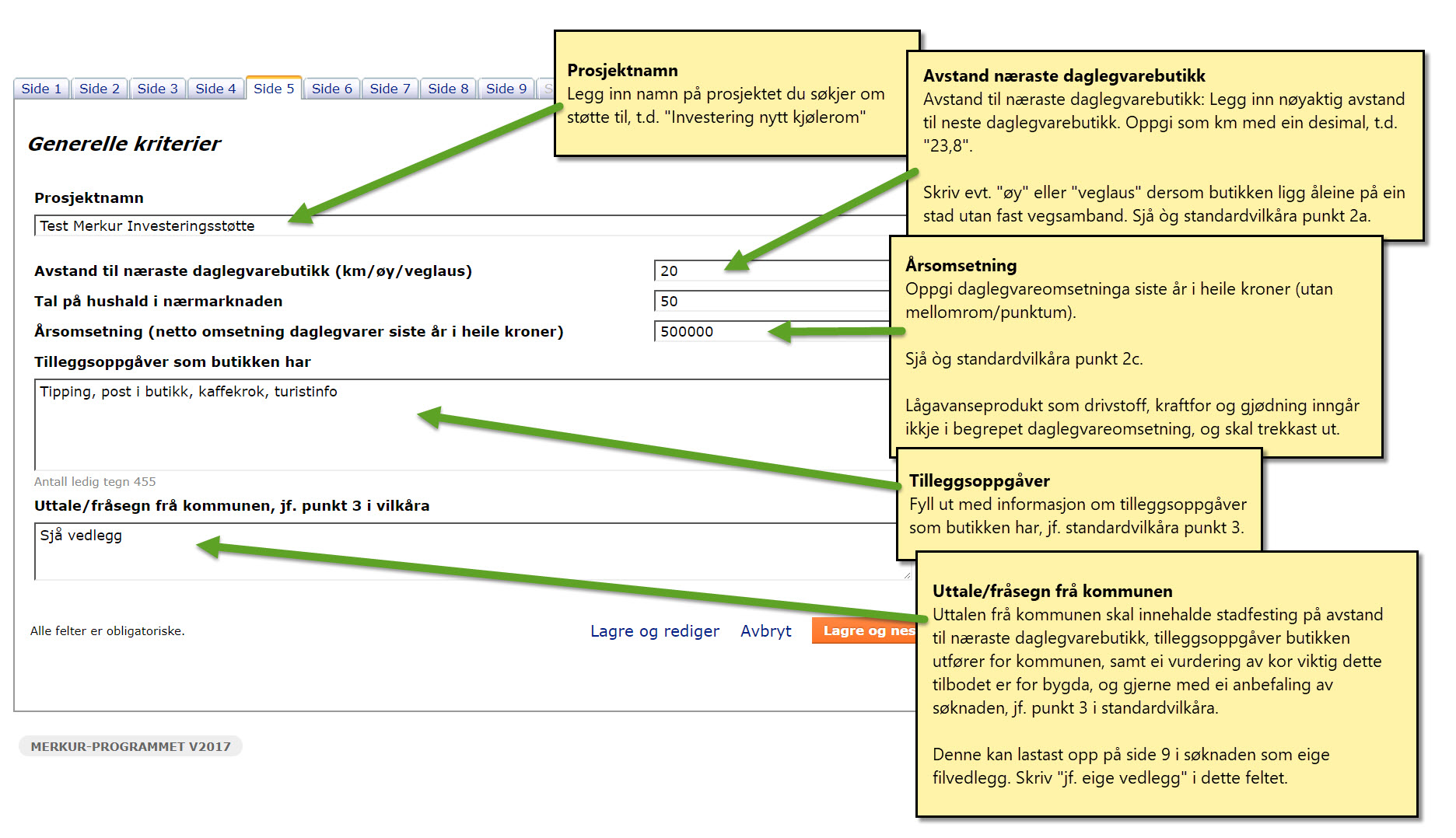 Skjema for "Investeringstøtte" benyttes her som eksempel. Snapshot av skjermbildene vises under side for side.