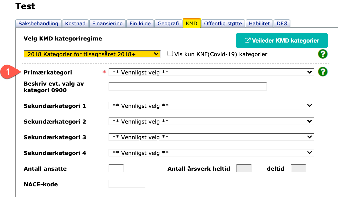 Fane 7 "Offentlig støtte": Velg korrekt type søtte